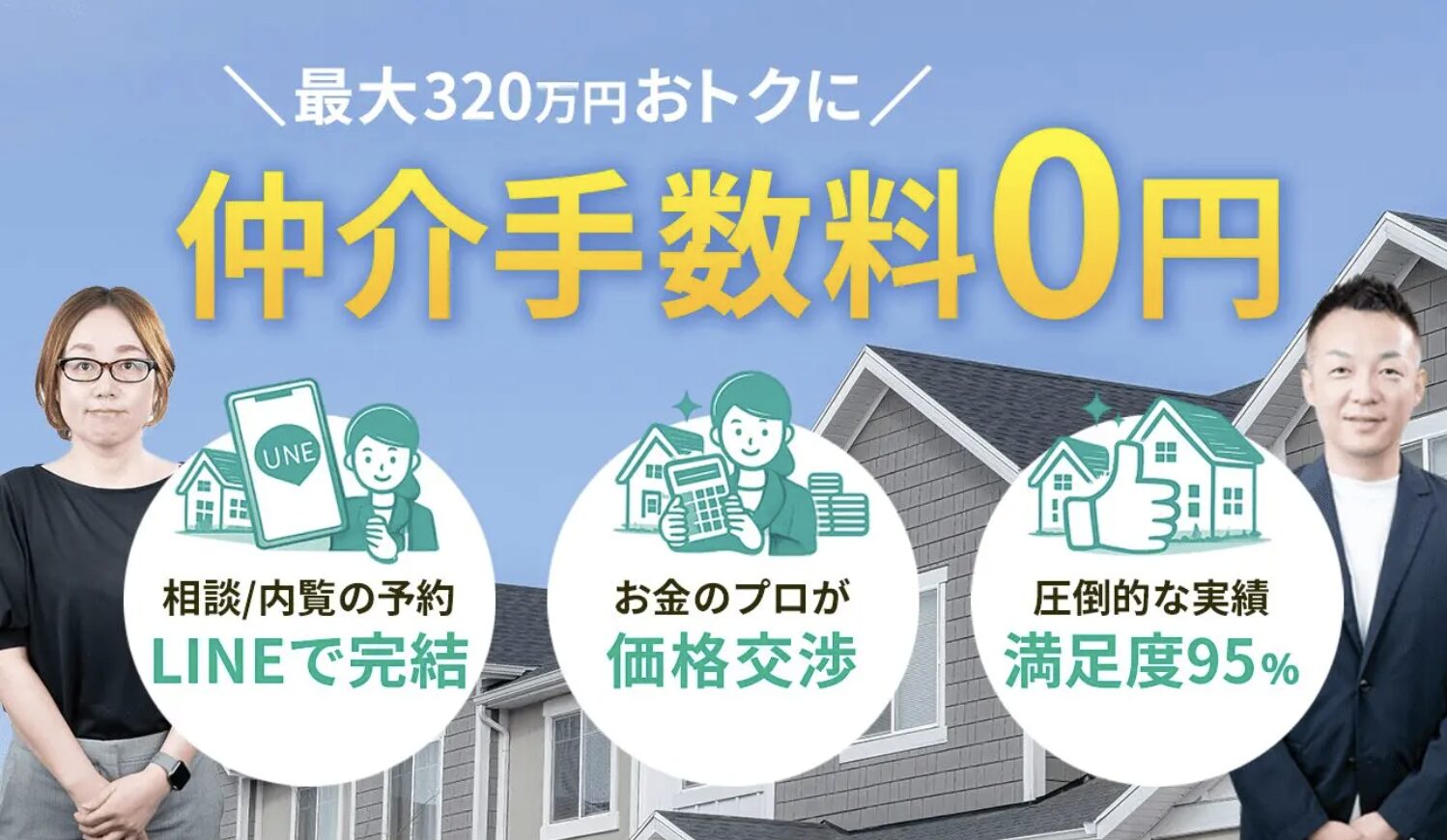 買主側手数料を他社に譲ることで、売主様の売却価格を1円でも高くすることだけに専念。