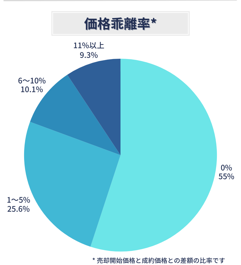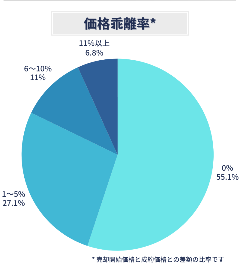 半数以上のマンションが売却開始価格そのままで成約しています(価格乖離率0%)。