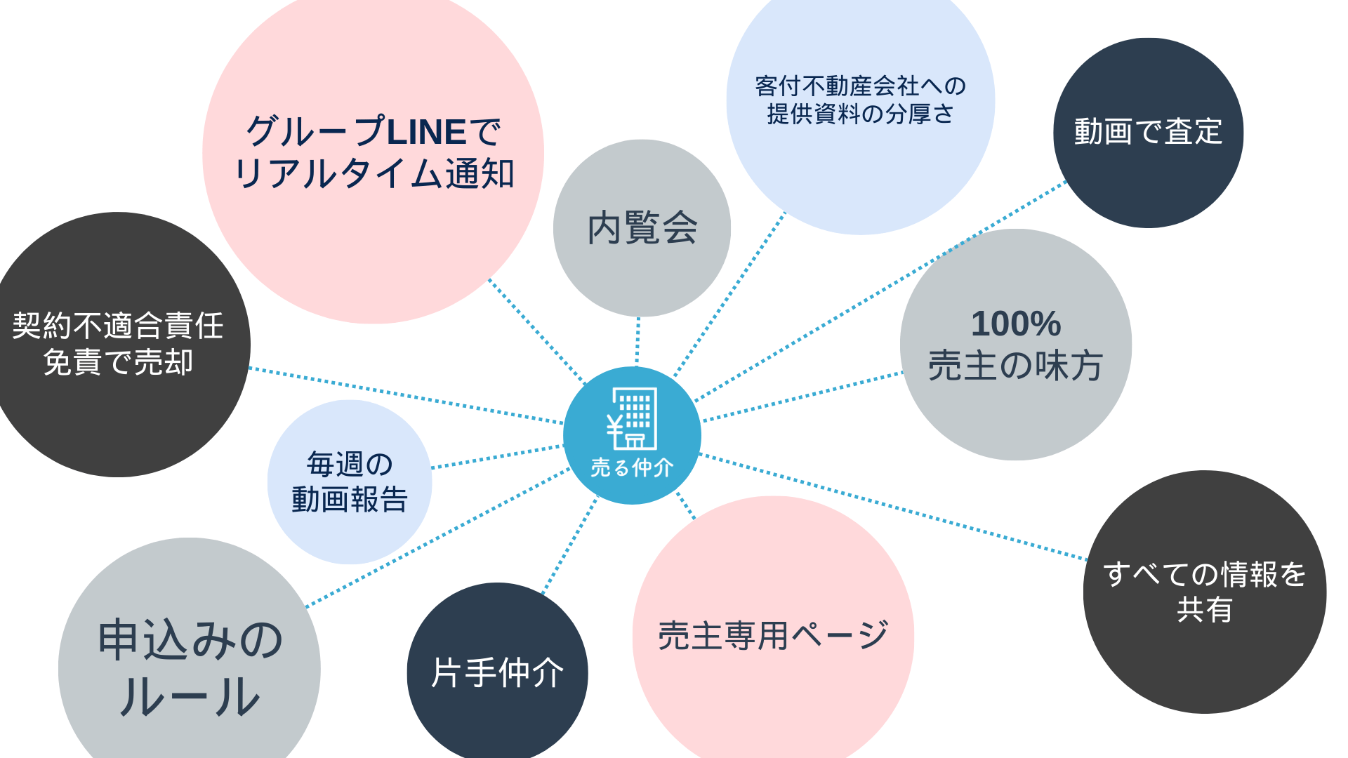 とにかく売主の利益のために、とにかく高く売るために、売却についてどの不動産会社よりも考え抜いた自信があります(ここでいう売主の利益とは、金額のみならず、手間・トラブル回避なども含みます)。