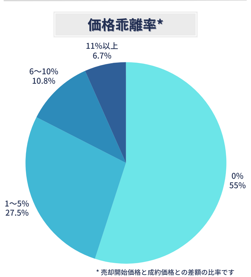 半数以上のマンションが売却開始価格そのままで成約しています(価格乖離率0%)。