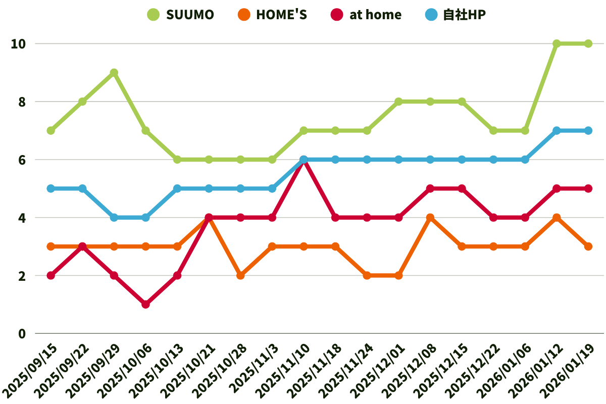 他不動産会社による各物件情報サイトの広告数です。