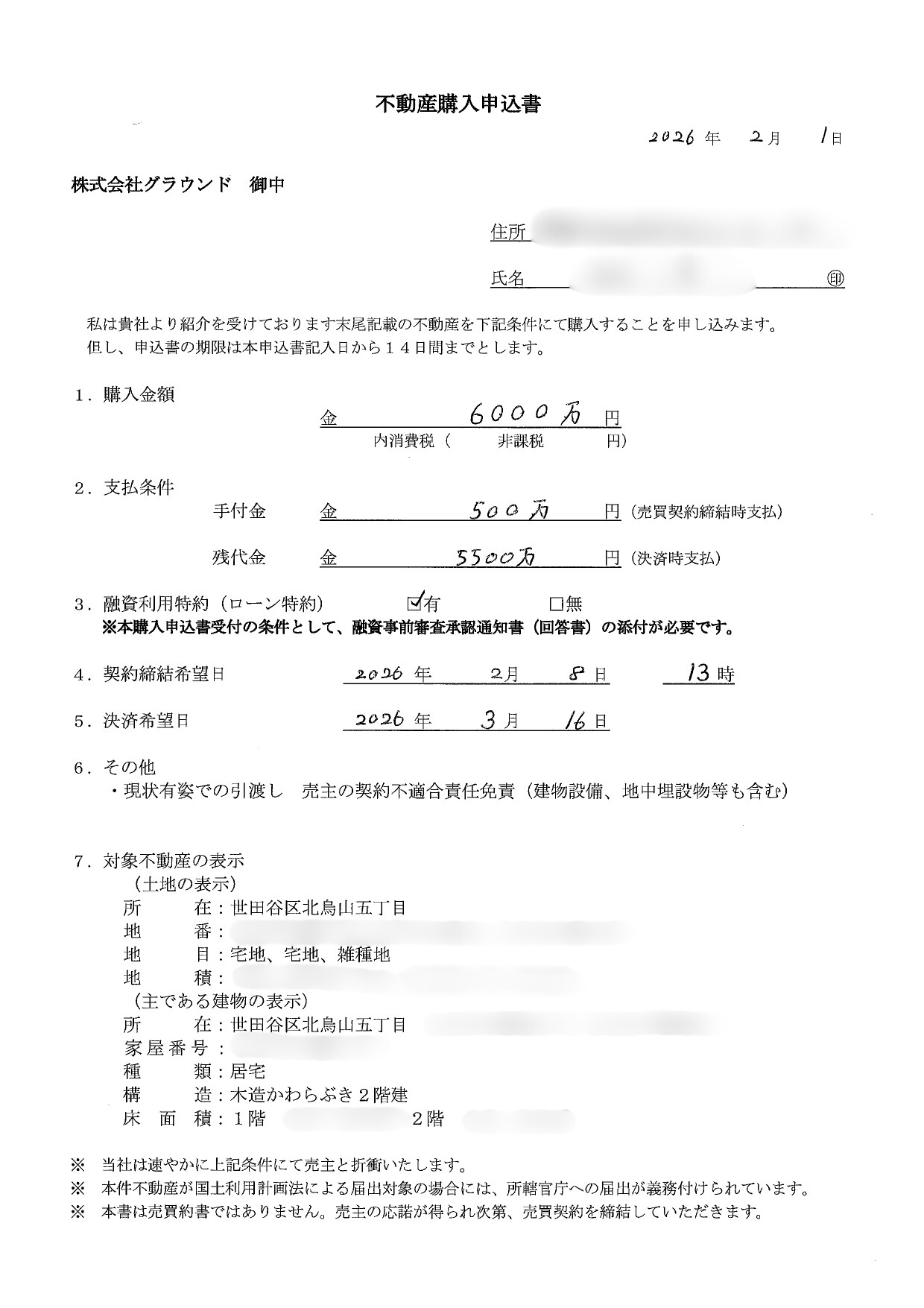 購入申込書受領日