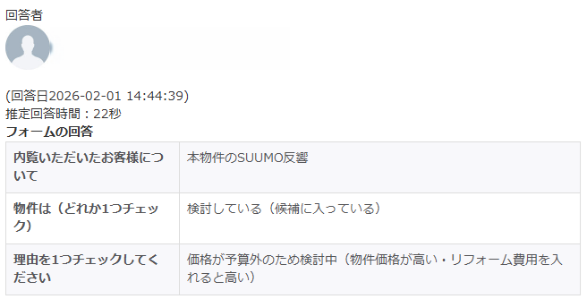 物件に対する印象は悪くなさそうです