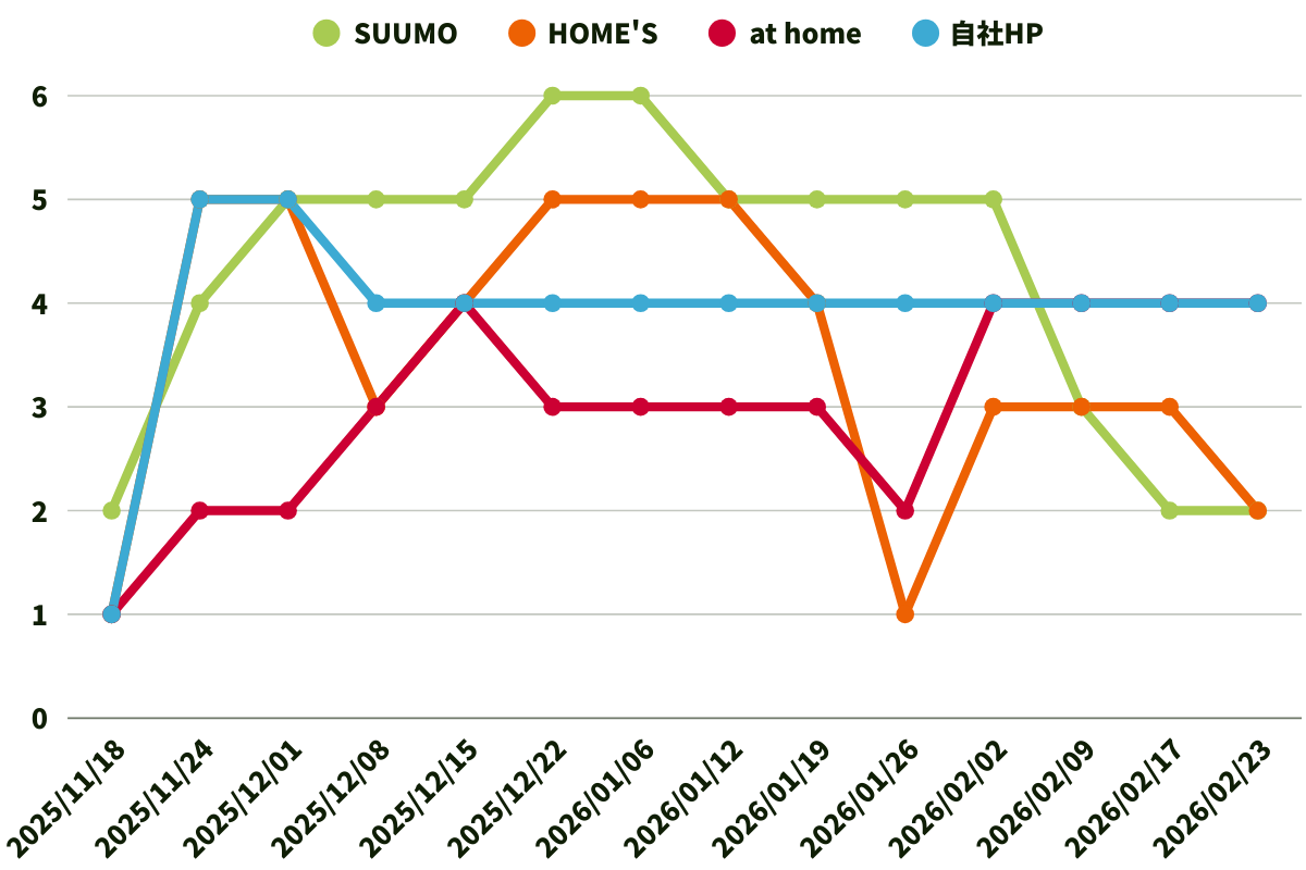 他不動産会社による各物件情報サイトの広告数です。