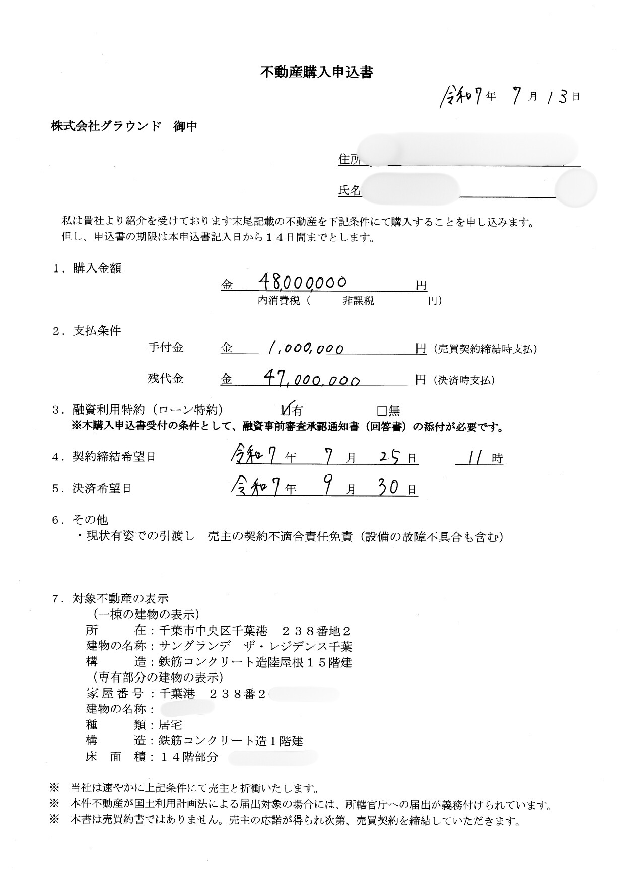 引渡し日条件 | 相談 |
