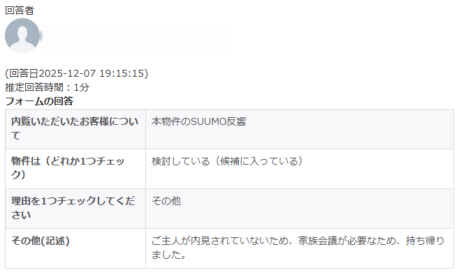 10分遅れでお越しになり、次の方のインターフォンがなるタイミングで退室(内覧は20分ほど)